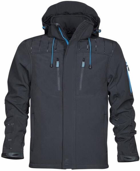 Luxus férfi softshell kabát a 4TECH ruházati kollekcióból. Vízálló 10 000 mm-ig, légáteresztő képessége 800 g/m2/24 óra. A kabát ujjait tépőzáras rögzítéssel lehet beállítani.
