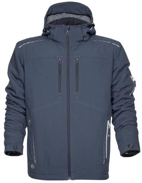 Kiváló minőségű és kényelmes férfi téli softshell dzseki levehető kapucnival és TPU membránnal. A felső része innovatív ElasticTech active® anyagból készül, amely a membránnal együtt jó szélállóságot és vízállóságot garantál 5000 mm-ig, miközben megőrzi a magas, 5000 g/m2/24h légáteresztő képességet. Ennek az ideális aránynak köszönhetően a dzseki kényelmes még nagyobb fizikai terhelés esetén is, felesleges izzadás nélkül.  A dzseki meleg fleece béléssel és funkcionális termo réteggel a háton van szigetelve. A kapucni levehető és összehúzható. Az ujjak szélessége patentok segítségével állítható, a dzseki alsó szegélye pedig stopperekkel összehúzható. Cipzáras és több praktikus zsebbel rendelkezik, melyek mindegyike cipzáras - 2 oldalzseb, 1 mellkasi zseb és 1 zseb az ujjon. A vállrész dekoratívan nyomtatott, és kis fényvisszaverő elemekkel van kiegészítve, amelyek rossz fényviszonyok mellett növelik a láthatóságot.