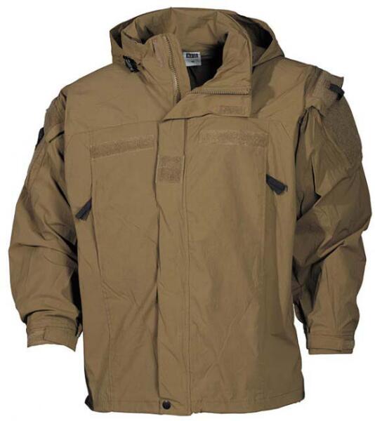 Új vízálló és szélálló kabát, lélegző anyagból, tépőzárral ellátott ujjakkal és zsebekkel. Állítható tépőzáras mandzsetták, 2 cipzáras mellzseb, rugalmas zsinórral ellátott öv. Integrált kapucni és első cipzár szél elleni fedővel. Mindennapi viselet, 98% nejlon és 2% spandex anyagból. Rendkívül funkcionális dzseki jó áron.